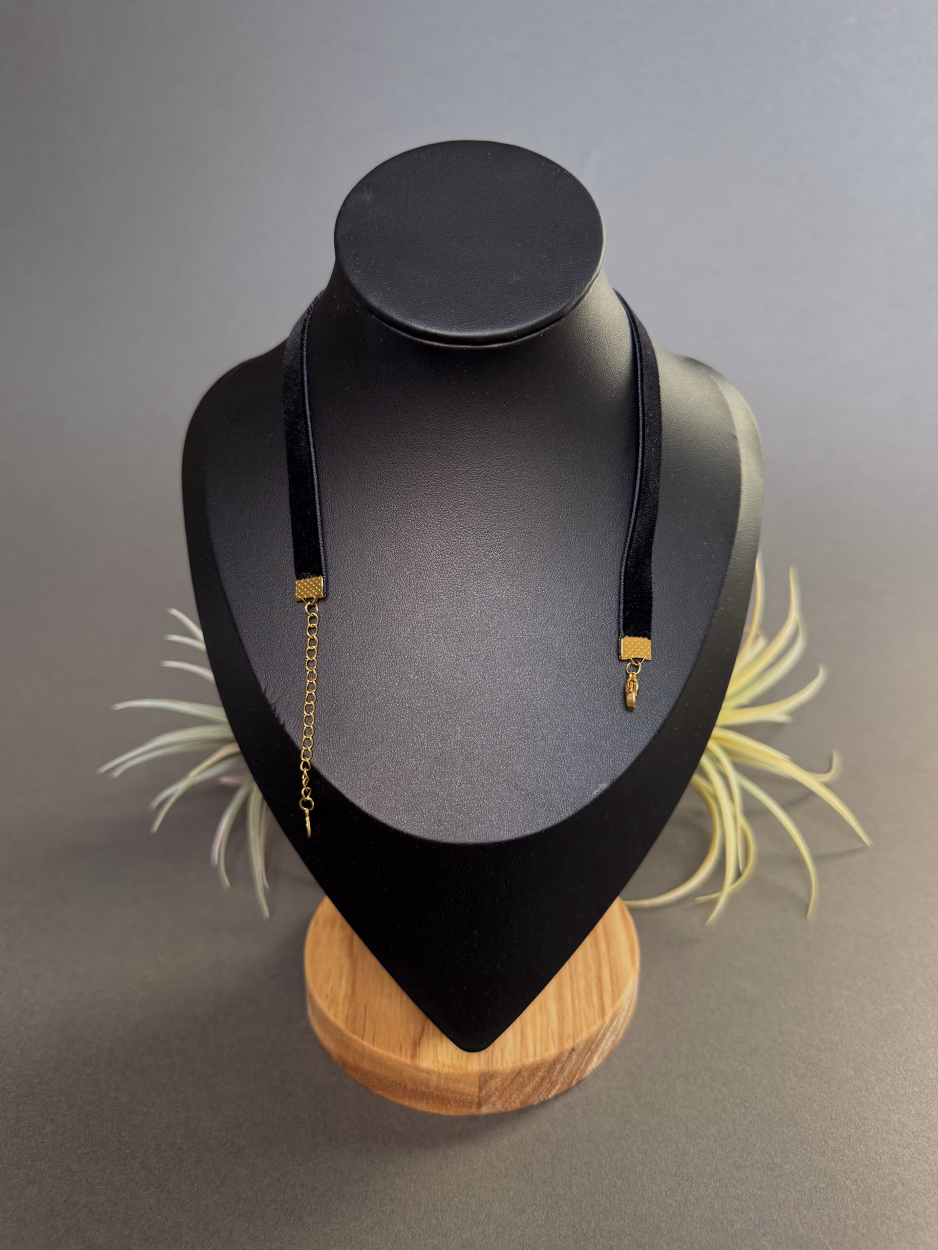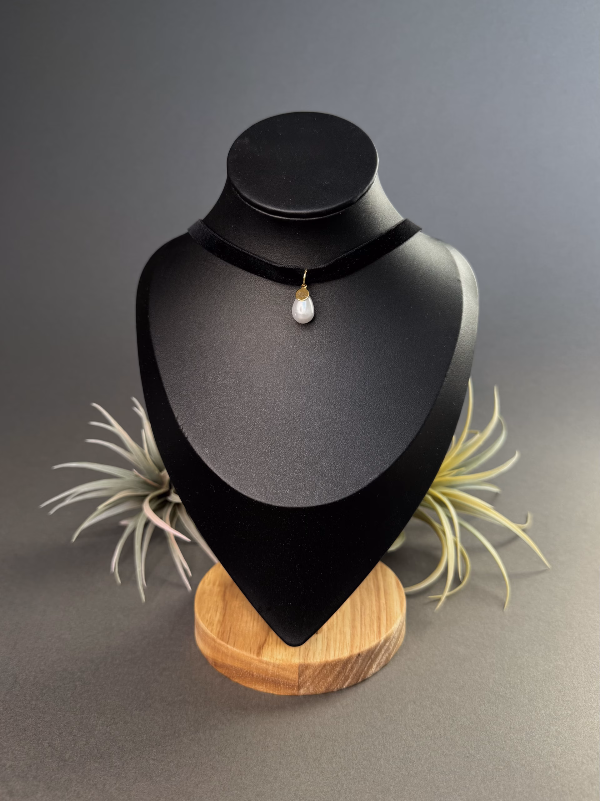 Elegantne sametist choker, mis lisab igale outfitile naiselikku ja ajatult šikki stiili. Tume sametlindiga kaelakee on kaunistatud tilgakujulise kunstpärliga, mis on kinnitatud roostevabast terasest detailidega.