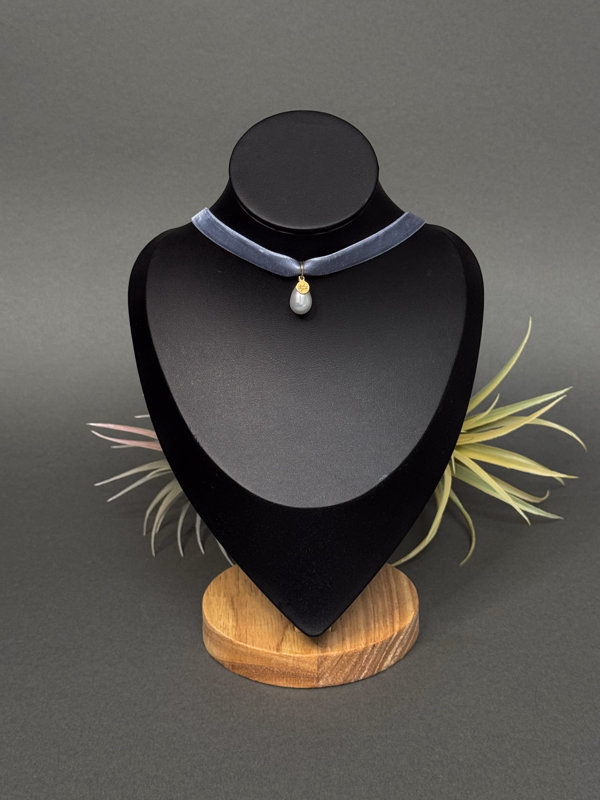 Elegantne sametist choker, mis lisab igale outfitile naiselikku ja ajatult šikki stiili. Tume sametlindiga kaelakee on kaunistatud tilgakujulise kunstpärliga, mis on kinnitatud roostevabast terasest detailidega.