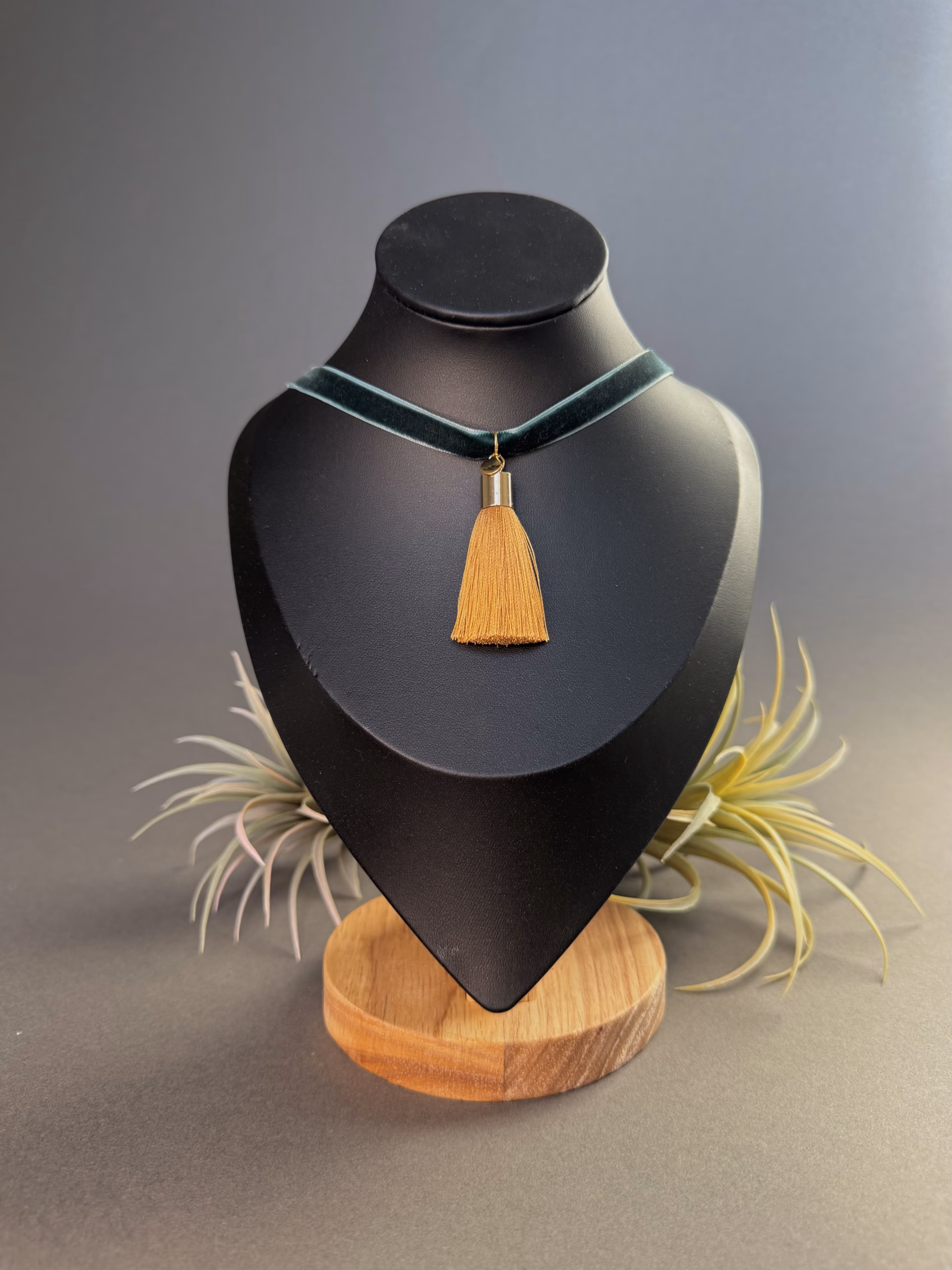 Elegantne sametist choker, mis lisab igale outfitile naiselikku ja ajatult šikki stiili. Tume sametlindiga kaelakee on kaunistatud kolme tilgakujulise kunstpärliga, mis on kinnitatud roostevabast terasest detailidega.