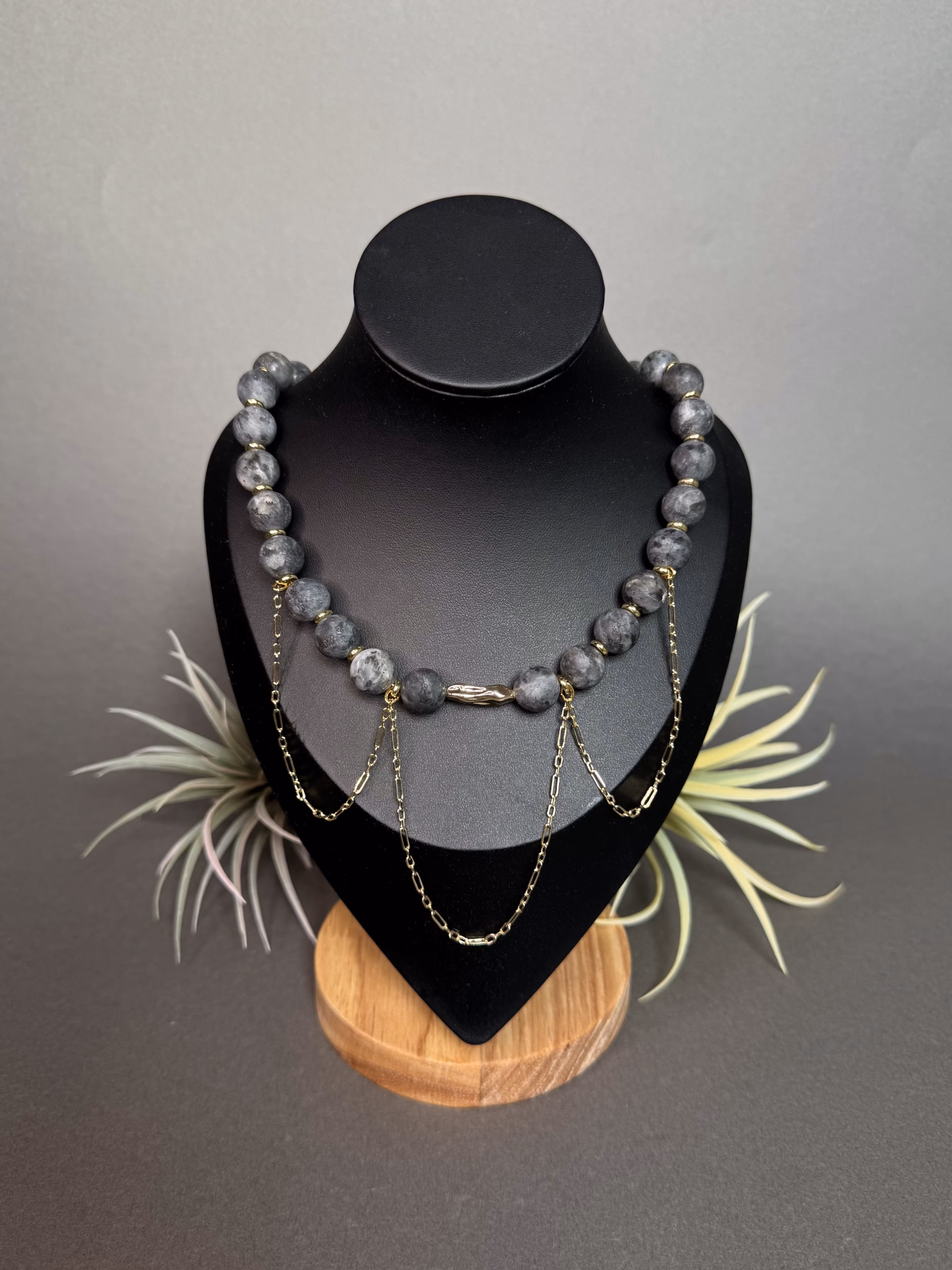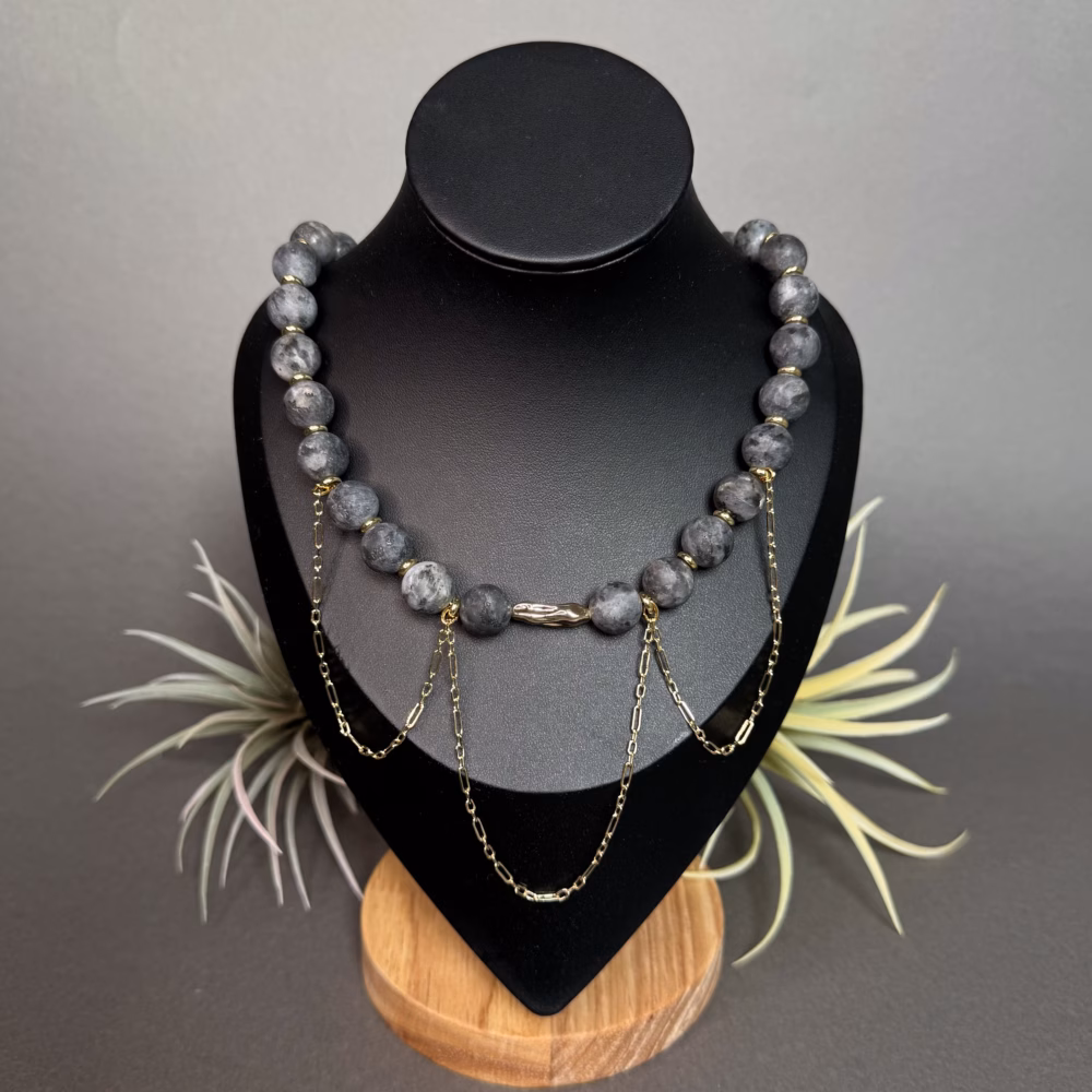 Lisa oma stiilile modernset rafineeritust selle eksklusiivse kaelakeega, mis ühendab endas looduslikud ja metallilised elemendid.
