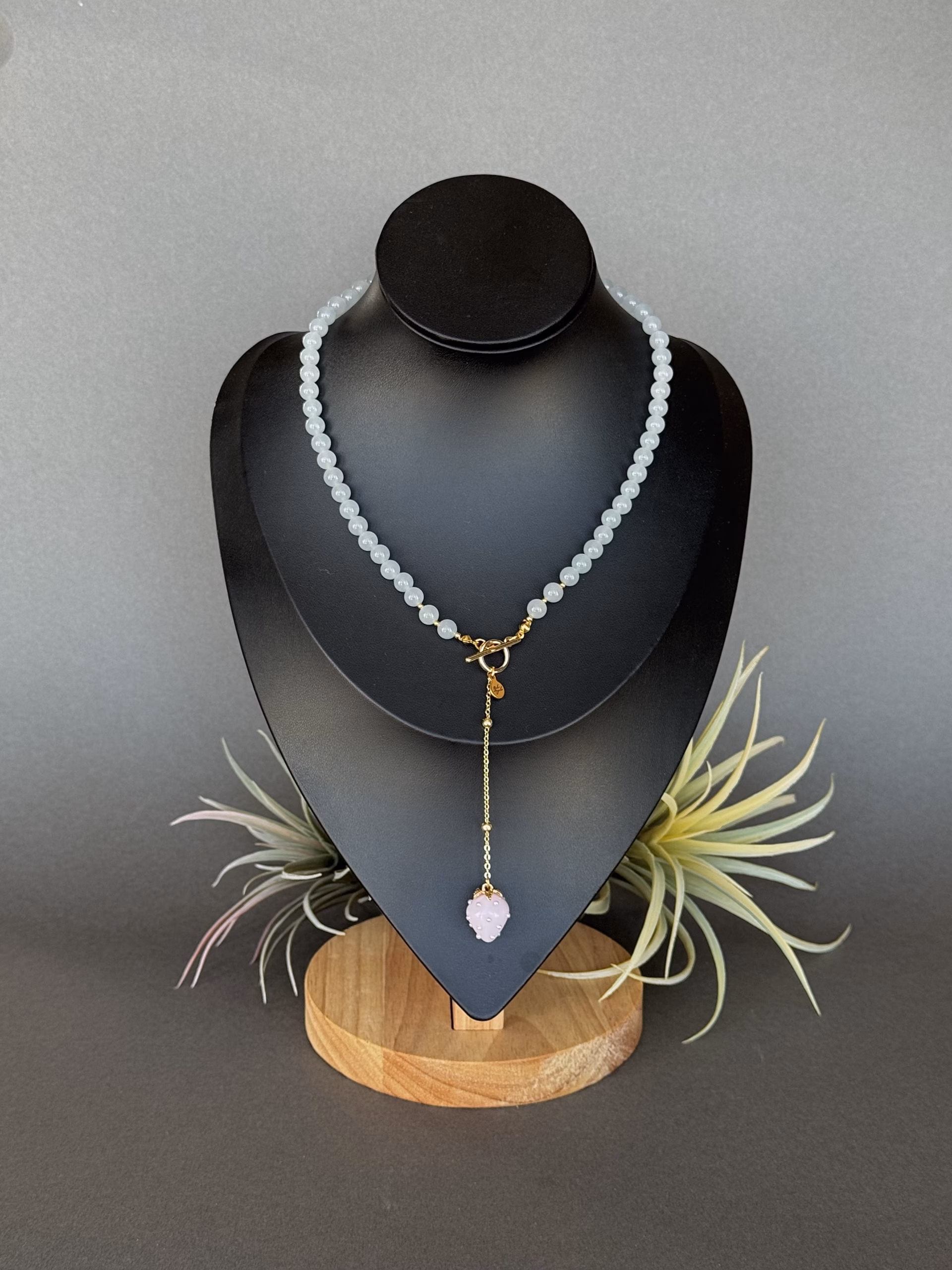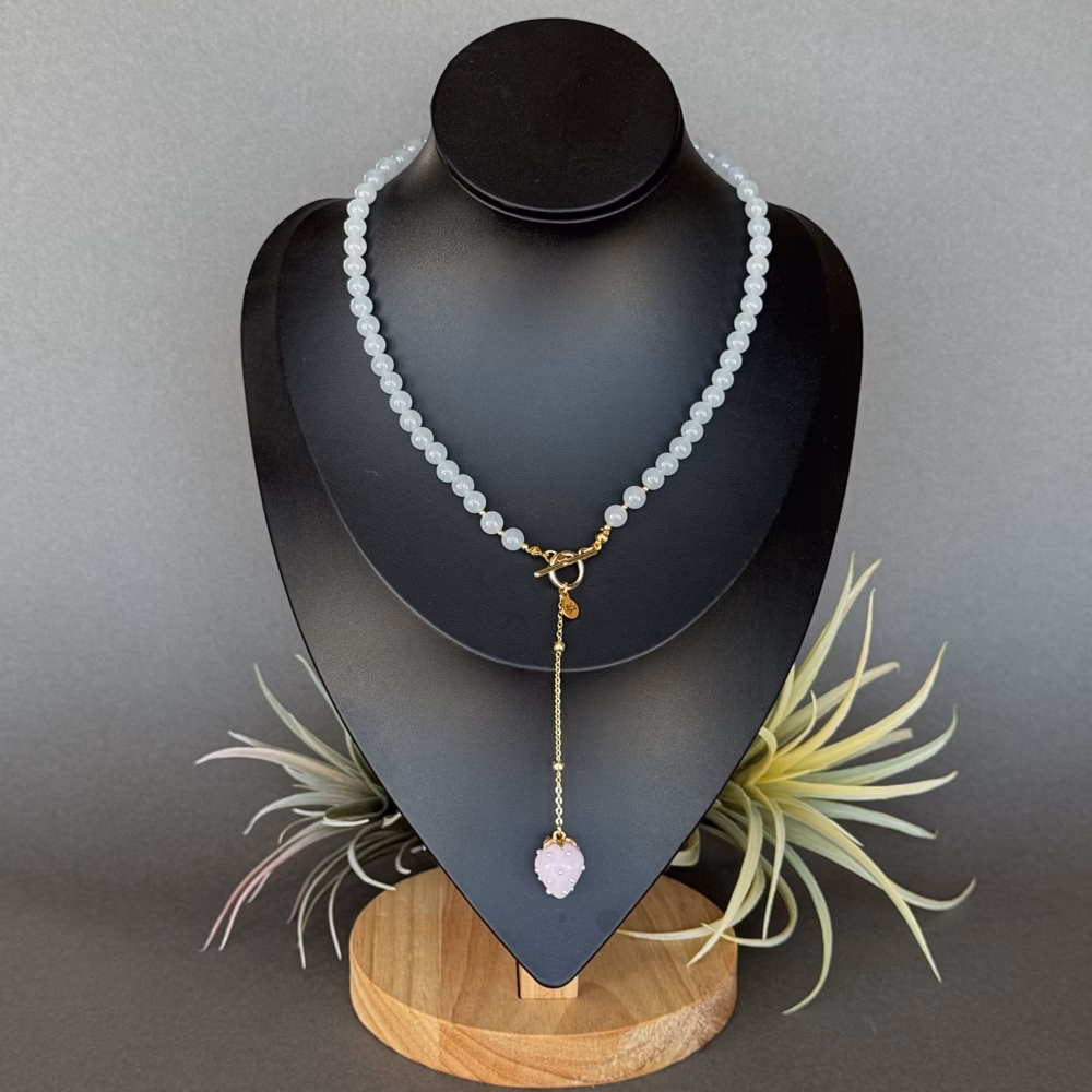Õrn ja naiselik kee, kus heledad mererohelised helmed kohtuvad väikese pastellroosa maasikaga. Ees asetsev T-kinnitus ja pikk rippuv kett joonistavad kaela kaunilt välja ning lisavad boho-šiki liikumist igale sammule. Dama mini maasikakee on täiuslik kaaslane nii pehmele kudumile kui suvisele kleidile.