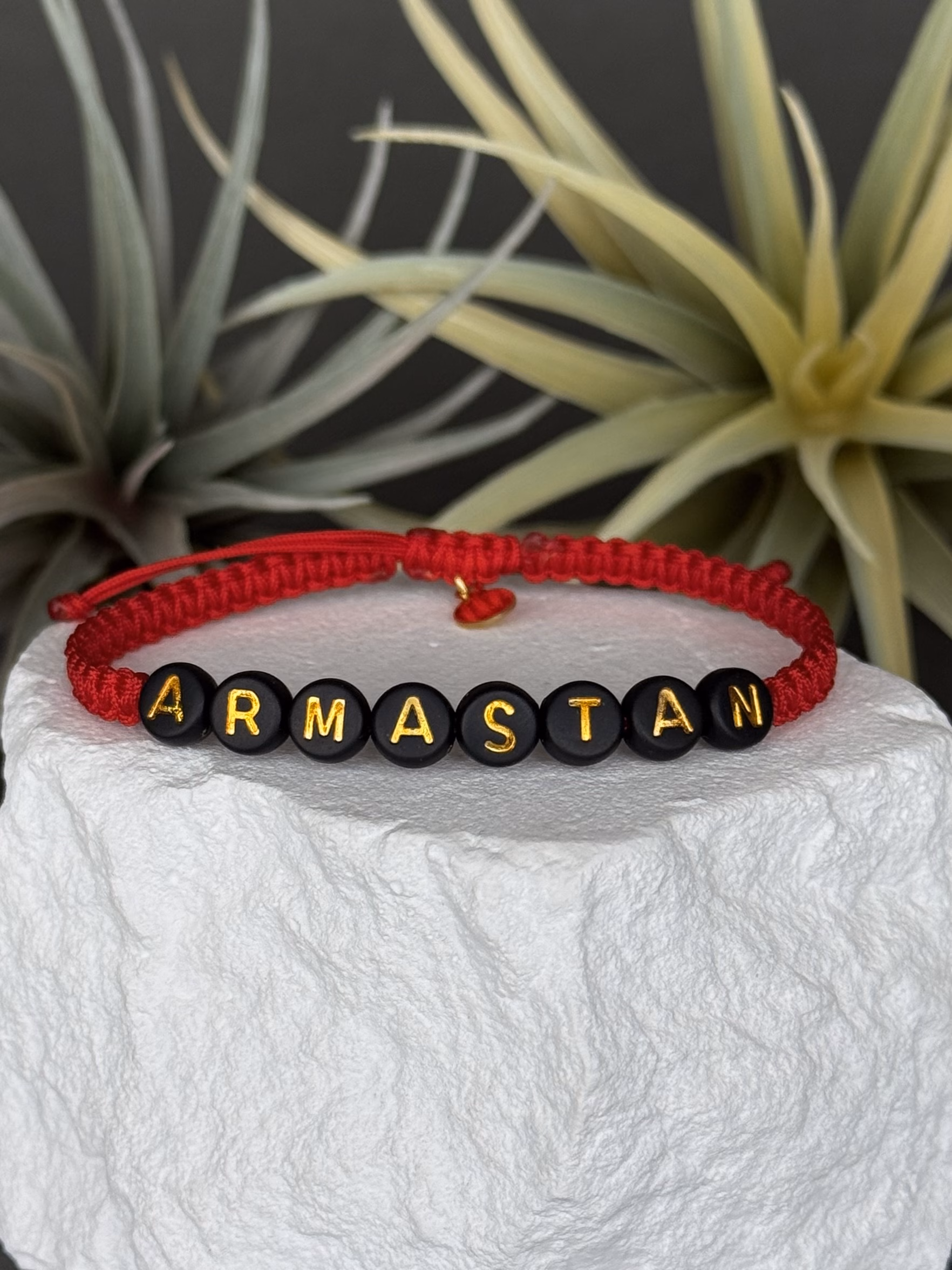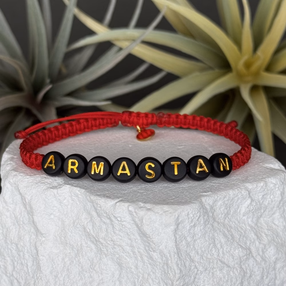 Lihtne, aus ja südamest – punane nimepael kirjaga ARMASTAN on täpselt see väike žest, mis ütleb kõik vajaliku. Mustadel tähthelmestel olev kuldne kiri joonistub punase paela taustal eriti hästi välja, muutes käevõru armsaks aktsendiks nii naisele, mehele kui teismelisele.