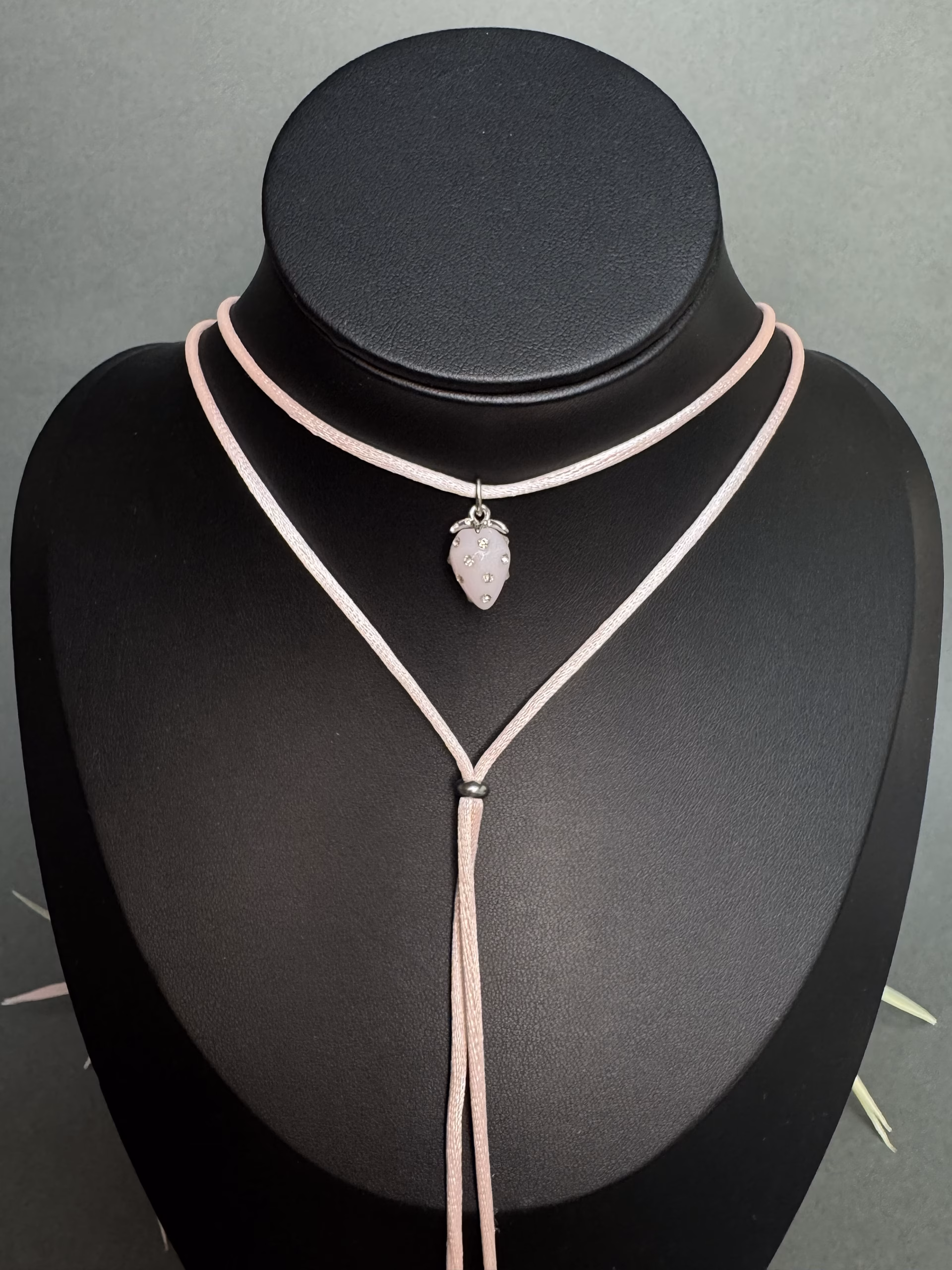 Satiinpaelast choker – ülekullatud efektse hõbeda tooni maasika ripatsiga