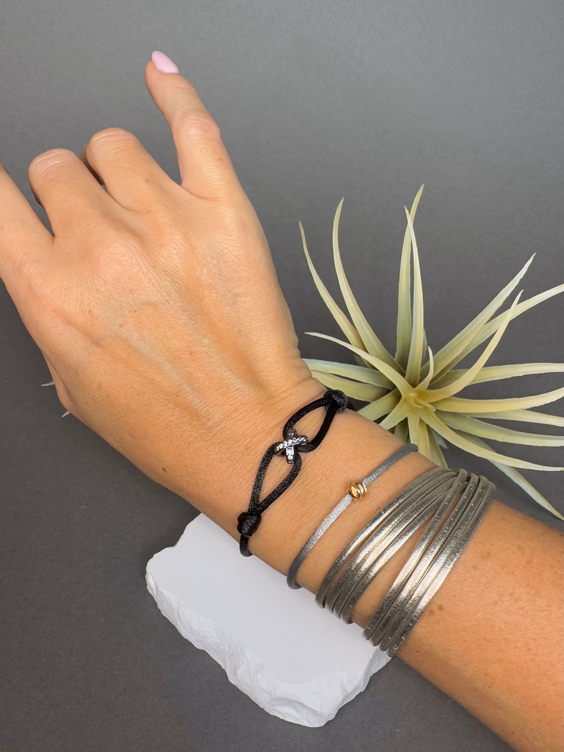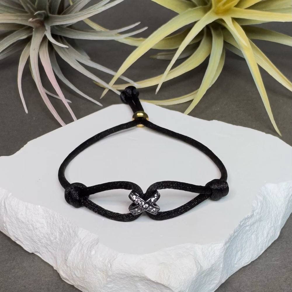 Material: Satin cord, Metal: stainless steel, Brass: 18K Gold, Stone: Zircon