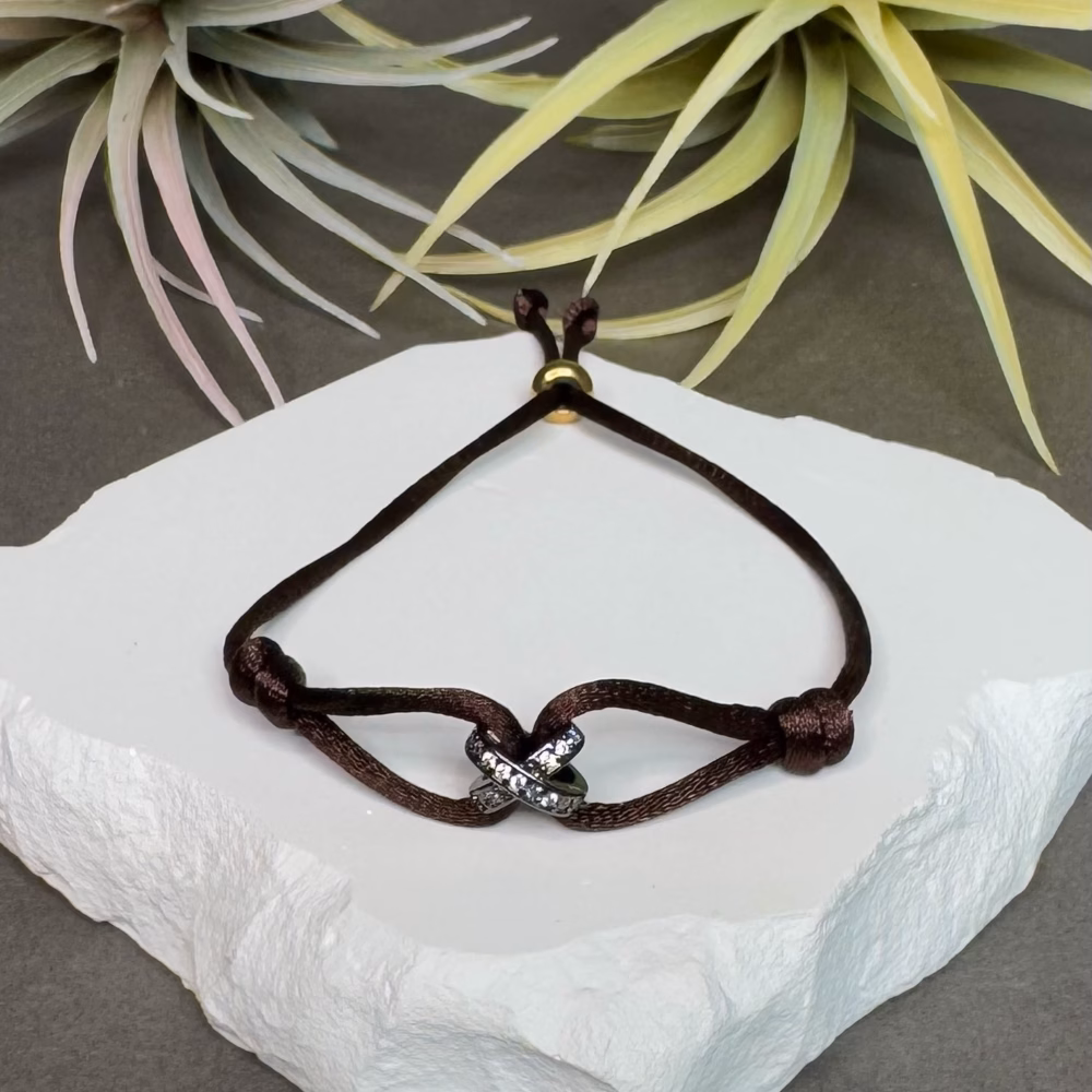 Material: Satin cord, Metal: stainless steel, Brass: 18K Gold, Stone: Zircon