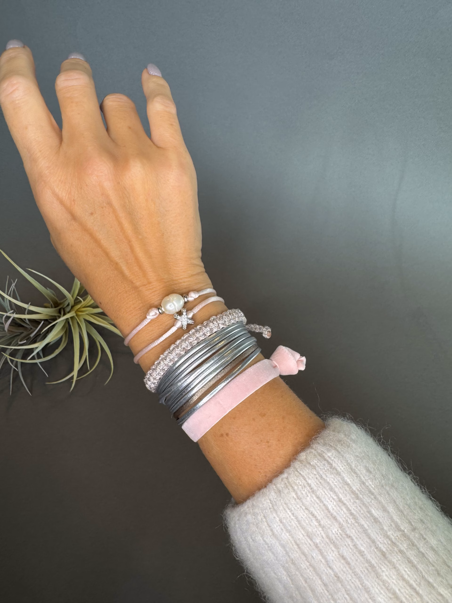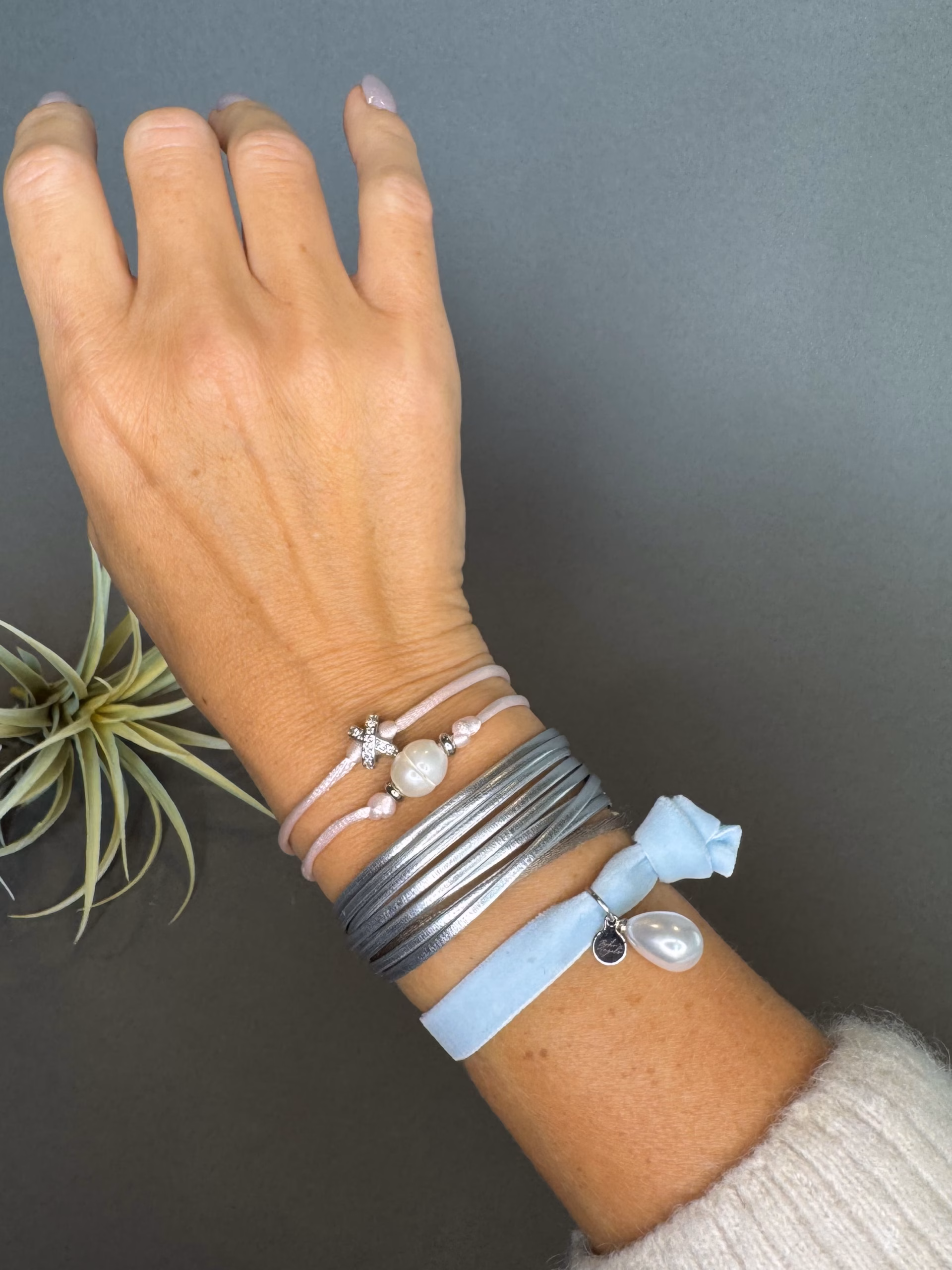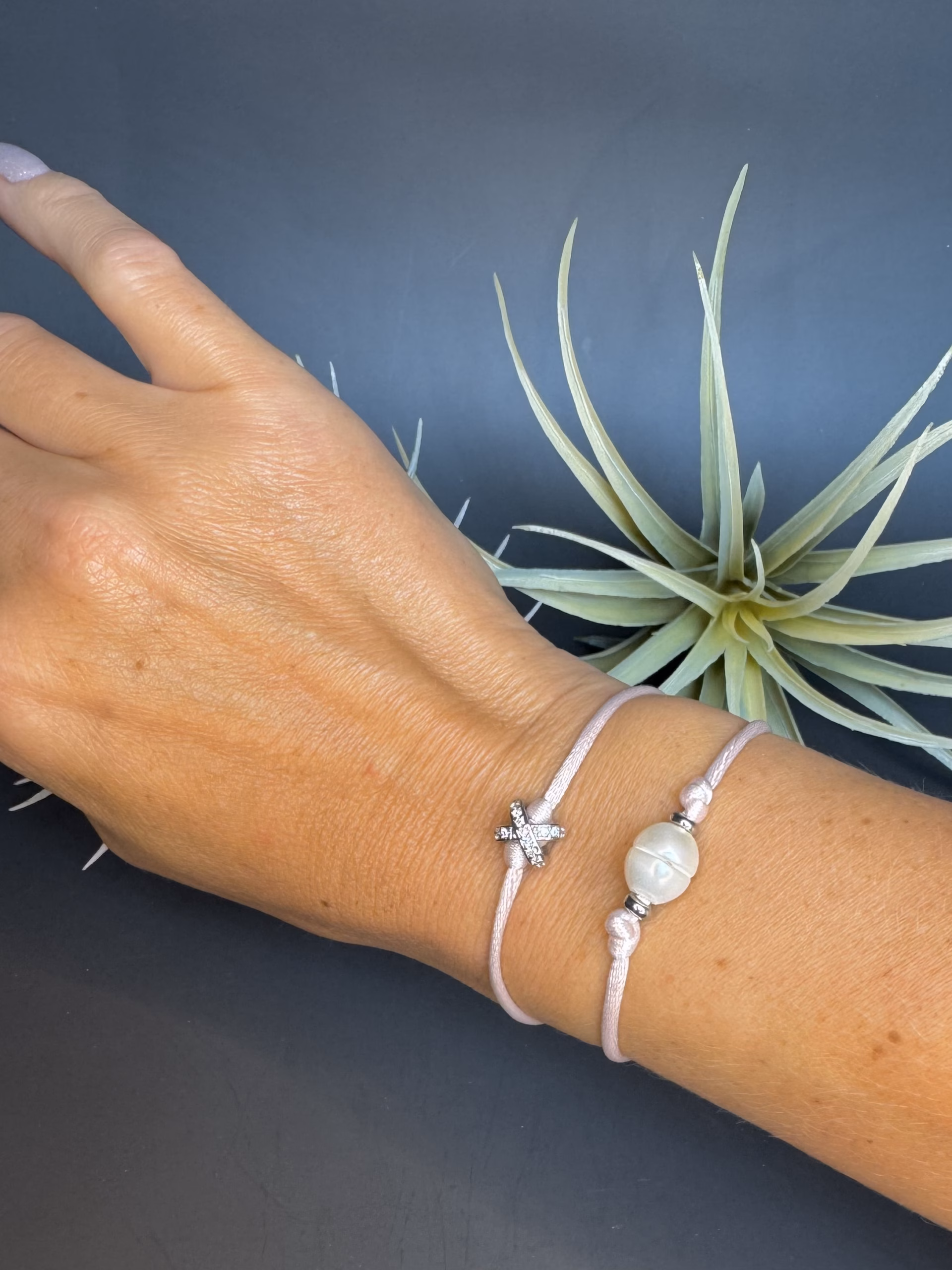 Material: Satin cord, Metal: stainless steel, Brass: 18K Gold, Natural Freshwater Pearl